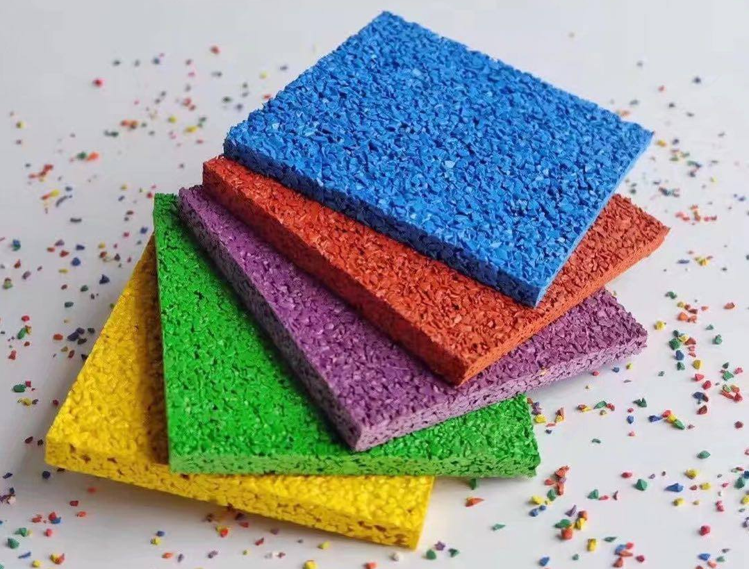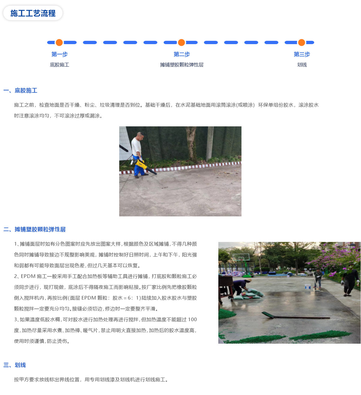 采??聚物含量20%的EPDM顆粒,具有良好的沖擊吸收性能,有效的減少運動傷害,提?運動的舒適性。